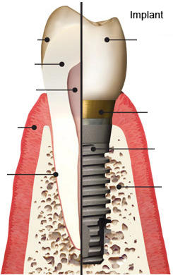 Un implant dentaire est une racine artificielle insérée dans alvéolaire pour remplacer une dent absente , et a le rôle de soutien pour les couronnes, les prothèses dentaires et les pont dentaires.